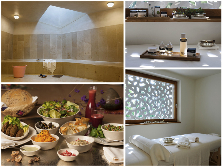 Complement the traditional Hammam tour by pampering your body with our regenerating full-body wrap and nourishing Hammam facial mask. Enjoy homemade date milk in the relaxation room afterward. You will then experience our harmonizing full-body massage «Le tour du corps». In the Salon, we serve you a pot of tea, two mezze, and either a soup or the freshly prepared daily salad. Conclude your day of wellness with our intensive cleansing facial for a radiant complexion.
